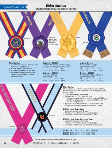 • Rider sashes are joined at the shoulder 5-1/2" rosette, lettering is approximately 5-1/2" rosette, lettering is