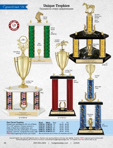 15" or 20" trophies. Choose between a ETBT30 ETWT30 15" 59.00 54.00 ETBT22
