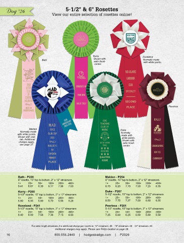 For extra length streamers, the additional charge per rosette is: 15" streamers .40 18" streamers .60 24" streamers .80