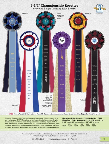 our most popular 6-1/2" Championship rosettes and added larger quantity price Mansfield - P247, Newcastle - P242, Fairford - P278