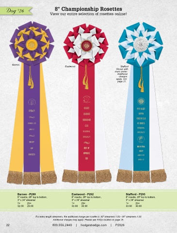 For extra length streamers, the additional charge per rosette is: 30" streamers 1.05 • 36" streamers 1.55
