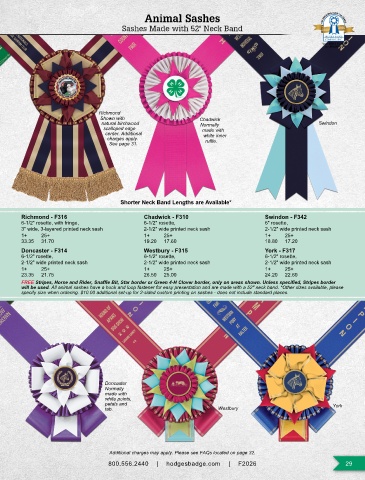 will be used. All animal sashes have a hook and loop fastener for easy presentation and are made with a 52" neck band. *Other sizes available, please