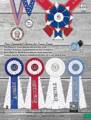 Custom Awards: Buttons, medallions & more, all in red, white & blue Pg 38