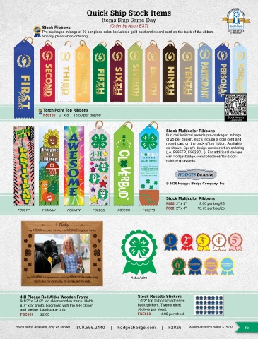 Stock items available only as shown. 800.556.2440 | hodgesbadge.com | F2026 Minimum stock order $15.00. 35