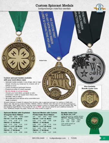 • Spincast medals available in any shape, size or logo/