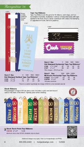 Hot Stamped Vertical Tape Top Ribbons* C16661 4" x 1-5/8" .53 .43 .38