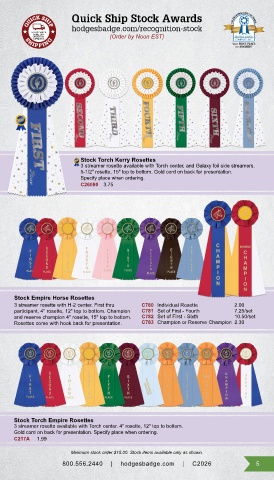 Rosettes come with hook back for presentation. C783 Champion or Reserve Champion 2.30